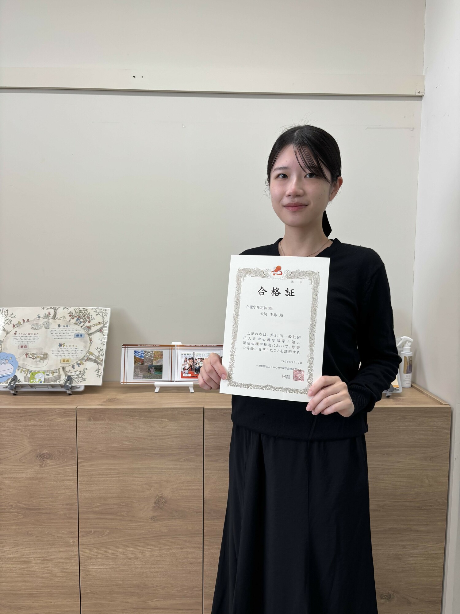 研究室の犬飼千尋さん(4年生)が心理学検定特一級を取得しました。